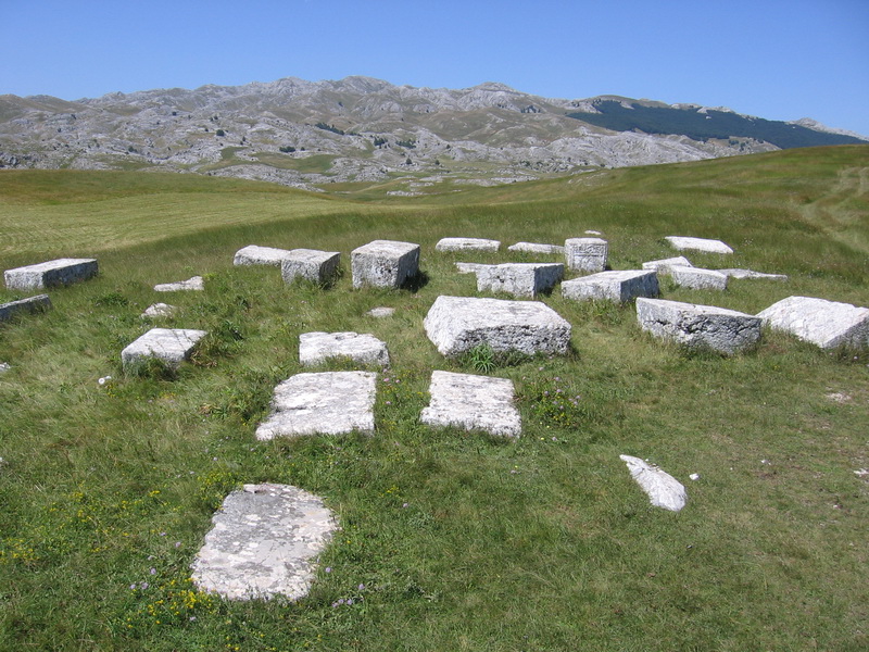 U daljini se nazire nešto što podseća na gomilu kauča razbacanih po travi sa obe strane puta. Dok prilazimo shvatamo da smo u potpunoj nedođiji naišli na nekropolis, skupina od 30-ak stećaka, sa zbog mnogovekovne izloženosti surovim vremenskim uslovima, jedva prepoznatljivo uklesanim detaljima, lokacija 3,5km od prevoja, na 1230mnv. Kasnije saznajemo da se ovo zove “Svatovsko groblje” i nalazi se ispod vrha Kršna jela. Osećaj, kao da smo se našli u petom nastavku Indijane Džonsa.