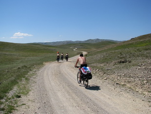 Jedan po jedan, u razmaku od 15-ak minuta iz suprotnih smerova nailaze 2 potpuno terenski opremljena džipa i gube ubrzo u oblaku prašine. To su prvi znaci života i civilizacije koje smo videli još od Uloga. Kilometrima jednolični predeli, ali ne smeta, izgledaju potpuno drugačije od ičega što smo do sada videli, zato ovaj predeo i zovu “Evropski Tibet”.