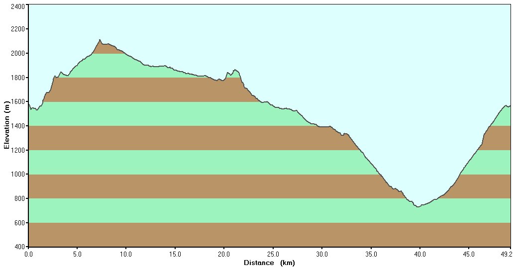 Fizički i tehnički vrlo zahtevna, celodnevna tura. Vreme potrebno za ovu turu je 7-12h u zavisnosti od fizičke pripremljenosti vozača. Dužina ture je oko 50km dok je apsolutni uspon oko 2kmnv. Teren je u najvećoj meri zemljani sa čestim kamenim deonicama, a povremeno se put u potpunosti gubi te je potrebno prenositi bicikl preko grmlja ili prepreka na putu. Preporučujemo da ovu turu vozite tokom druge polovine maja kada se sneg u najvećoj meri otopi, ali rastinje i dalje ne smeta previše. Na dopunu zaliha vode možete računati vrlo često nakon pređenog 15-og km ture pošto ćete tada često nailaziti na potoke koji su van domašaja stoke. Što se hrane tiče, zalihe eventualno možete dopuniti u Toplom Dolu ako budete imali sreće da jedina prodavnica radi.